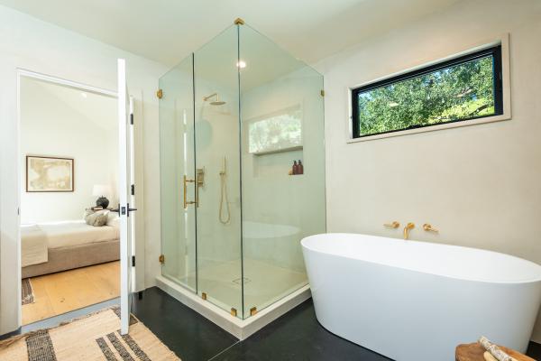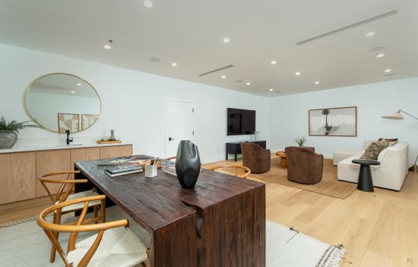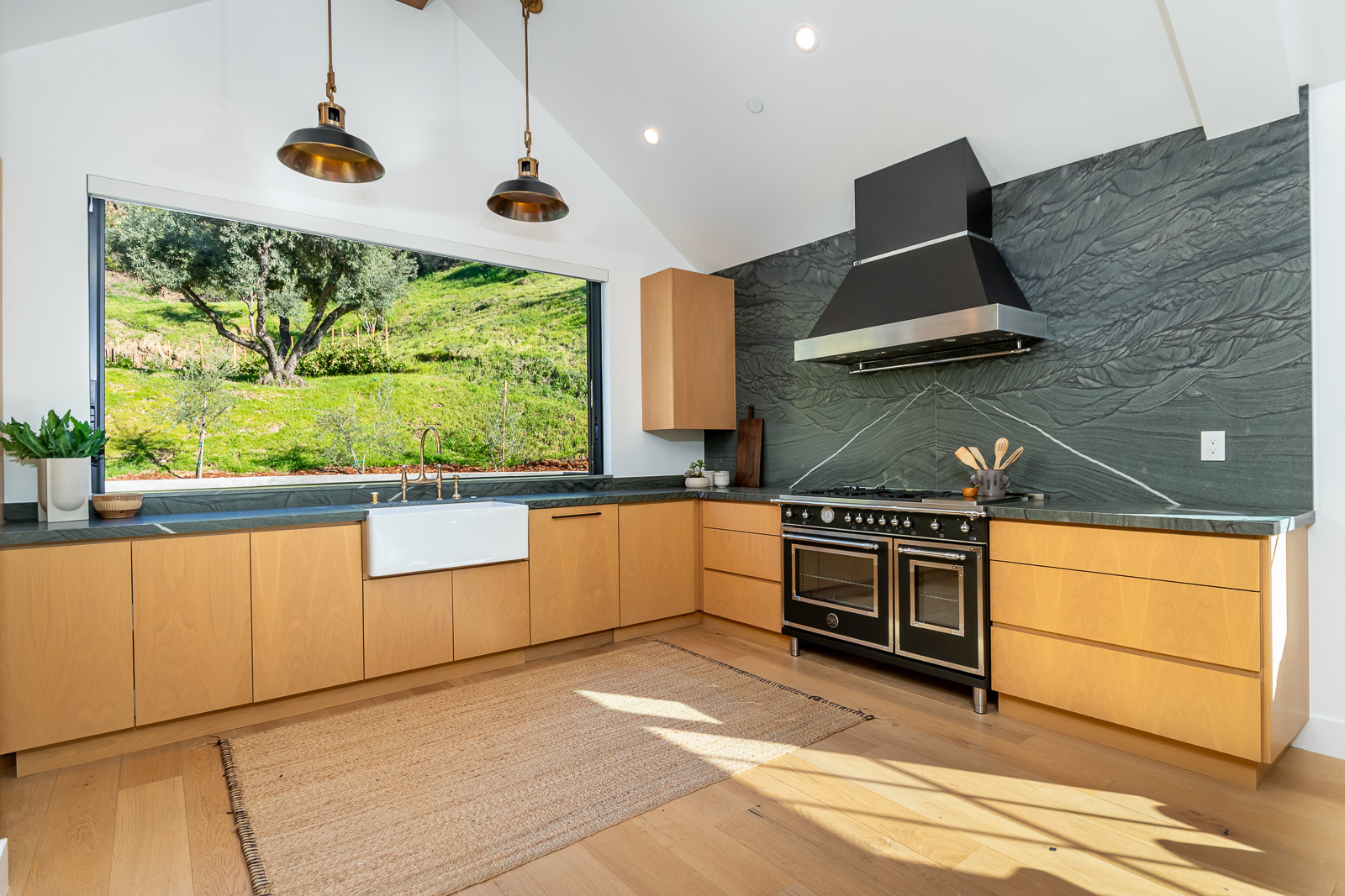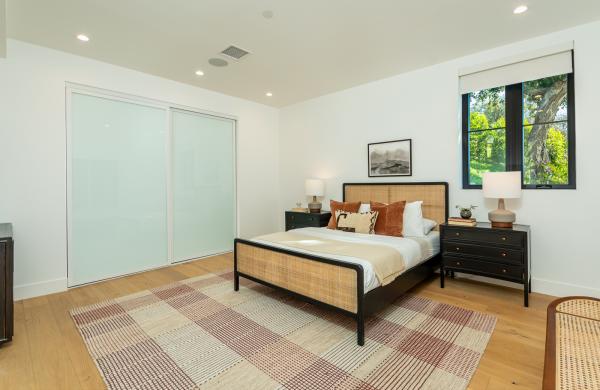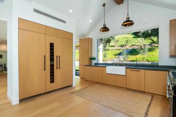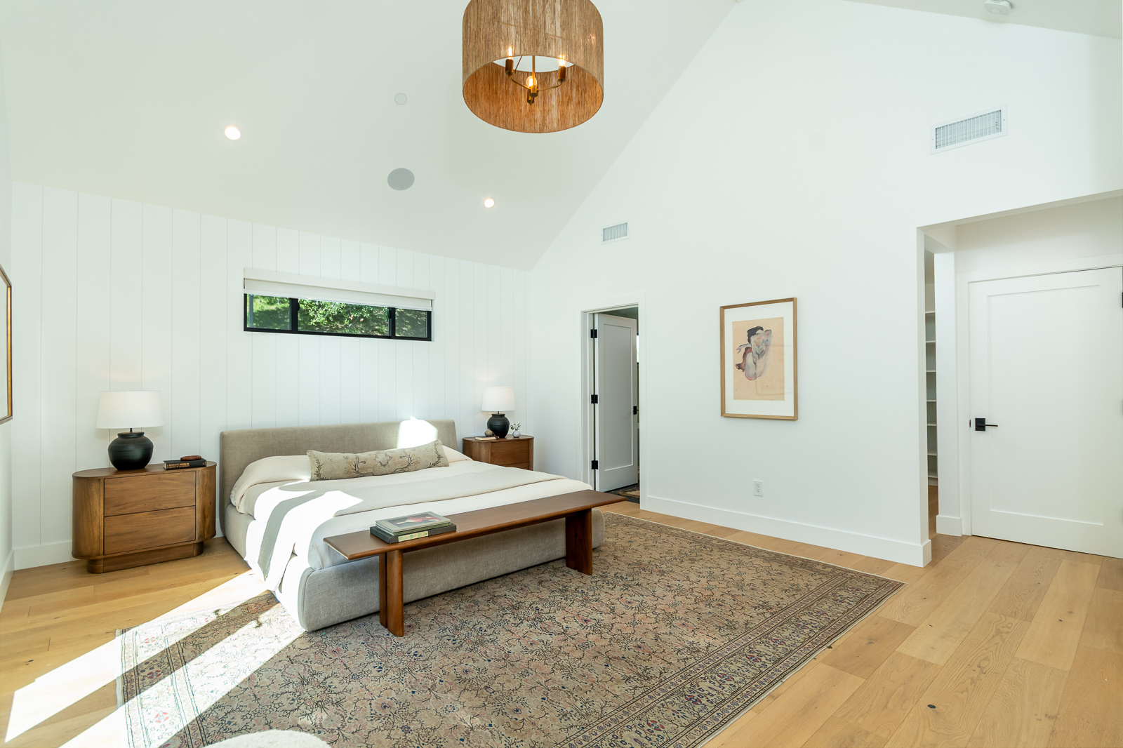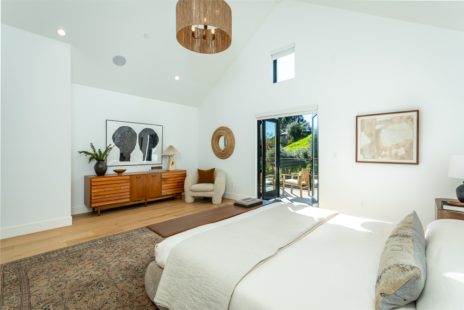 This elegantly redesigned Sonoma style farmhouse offers four bedrooms and five beautifully appointed bathrooms, blending timeless architecture with refined modern living. Thoughtfully designed interiors feature wide-plank white oak flooring and exceptional finishes throughout, creating a warm yet sophisticated atmosphere. Every space has been curated with attention to detail, from the gracious living areas to the serene bedroom suites, delivering both comfort and understated luxury. Designed for both everyday living and gracious entertaining, the home seamlessly blends classic farmhouse charm with contemporary luxury. Located at the end of a cul-de-sac with a gated perimeter this home offers over 4.5 acres of privacy, studded with mature olives trees and views of DTLA.